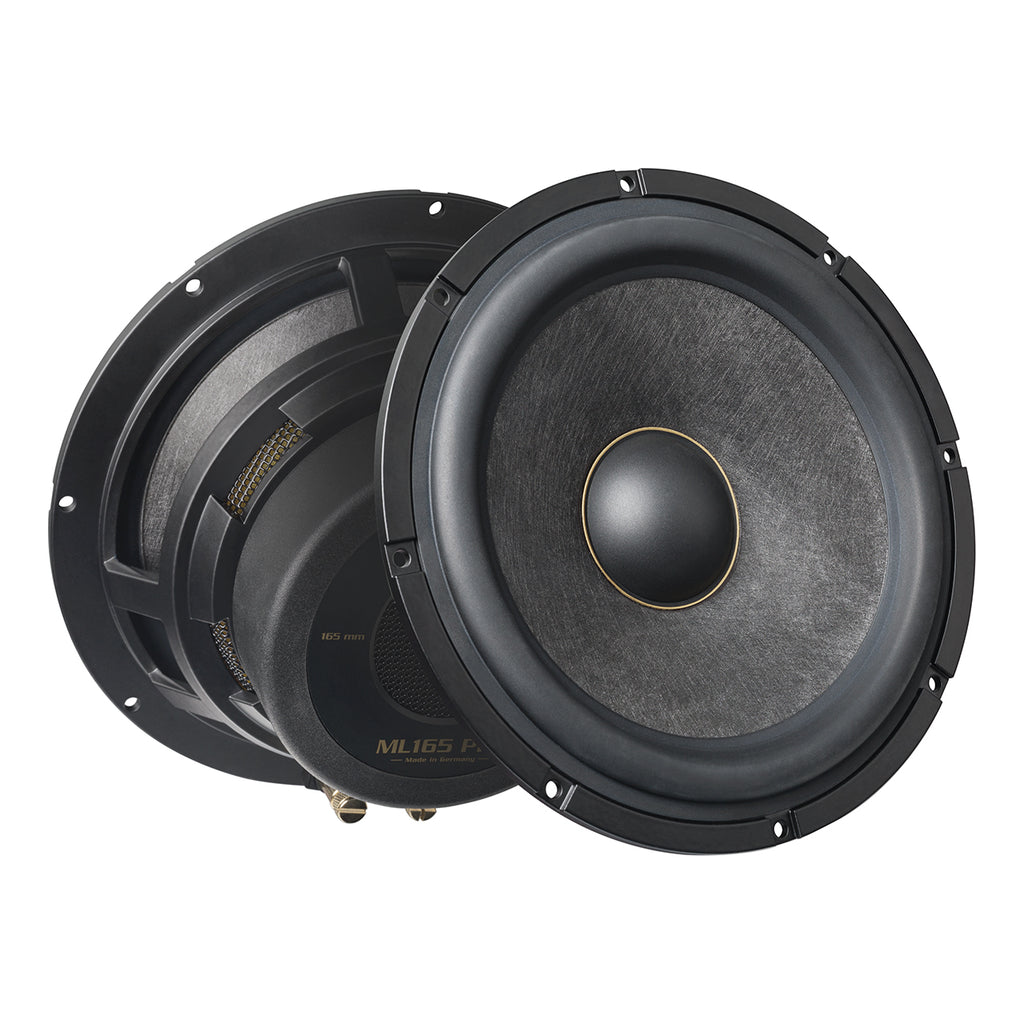 With its refined design, the ML165 PRO conveys a visual impression that perfectly complements its outstanding acoustic performance. The fine, silk-matte surface of the cone, the matt black powder-coated aluminum basket and the golden accent ring around the dust cap give it a distinctive, elegant character – perfectly suited for seamless integration into any vehicle interior.