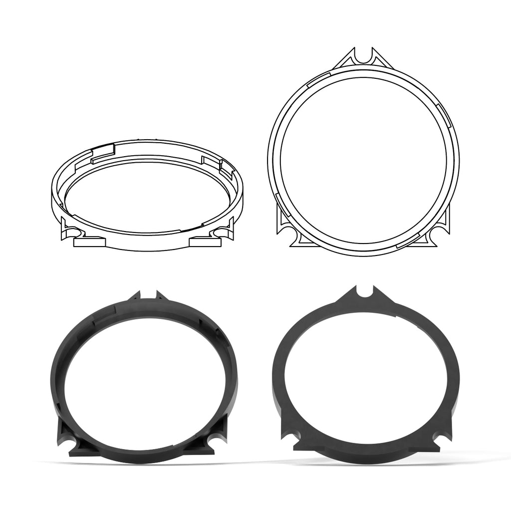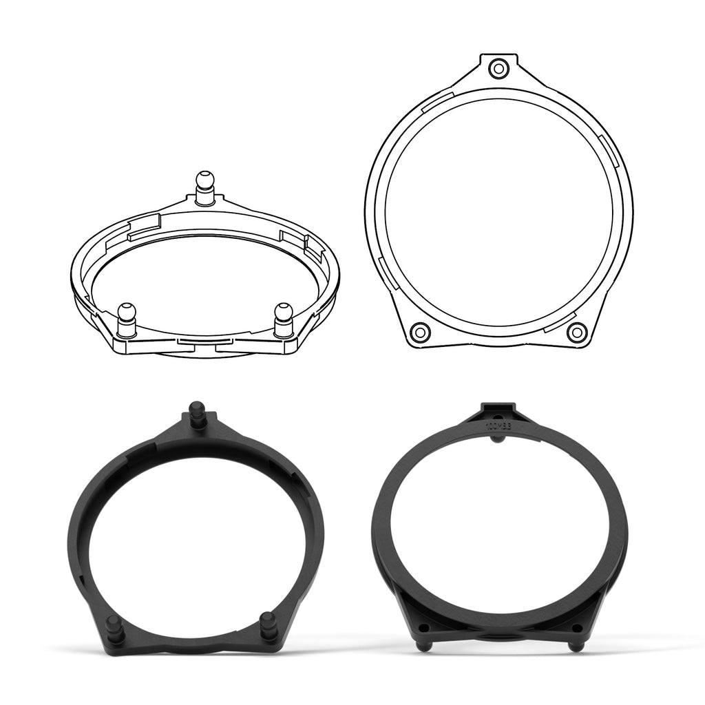 - Vehicle-specific adapter ring for a professional and acoustically optimized integration of the 4” / 100 mm HELIX COMPOSE midrange with FlexMount100 Technology in the original mounting location of the vehicle