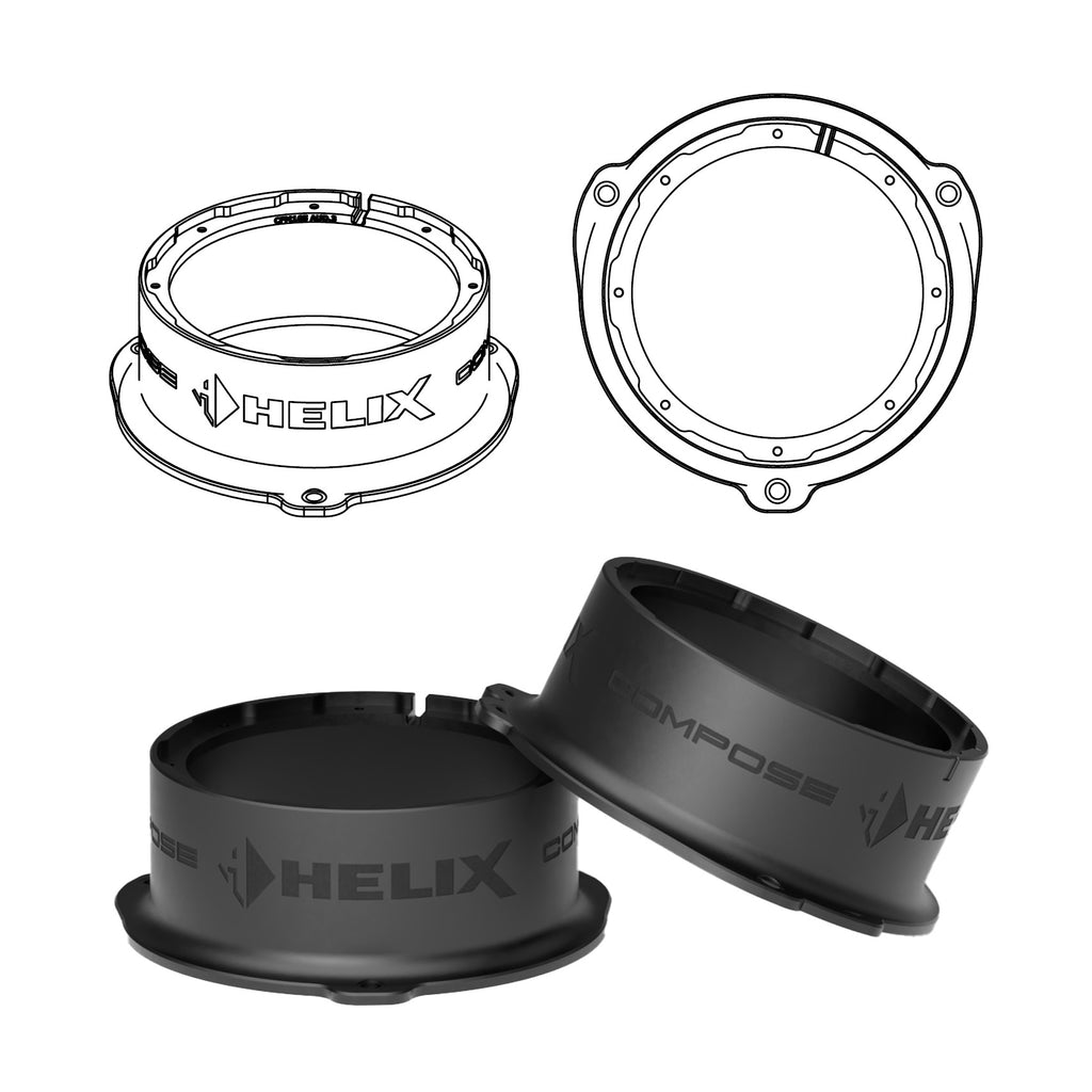 - Vehicle-specific adapter ring for a professional and acoustically optimized integration of the 6.5” / 165 mm HELIX COMPOSE midbass with FlexMount165 technology in the original mounting location of the vehicle