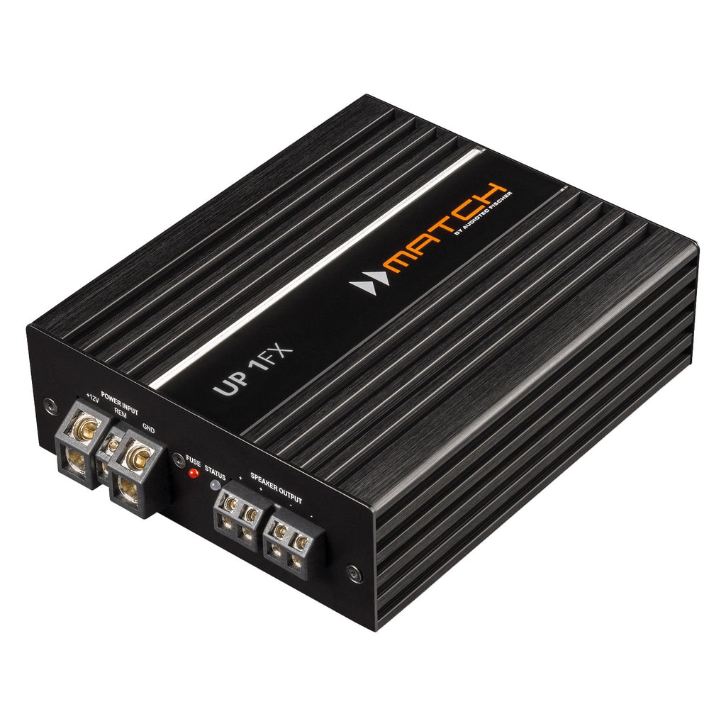 Exceptionally compact and powerful, this highly efficient high-fidelity Class D amplifier delivers exceptional sound quality in combination with an impressive output power of up to 1000 Watts. The immense power drives even high-performance subwoofers to peak performance and makes the UP 1FX the perfect companion for all HELIX and MATCH subwoofer chassis and enclosure subs.